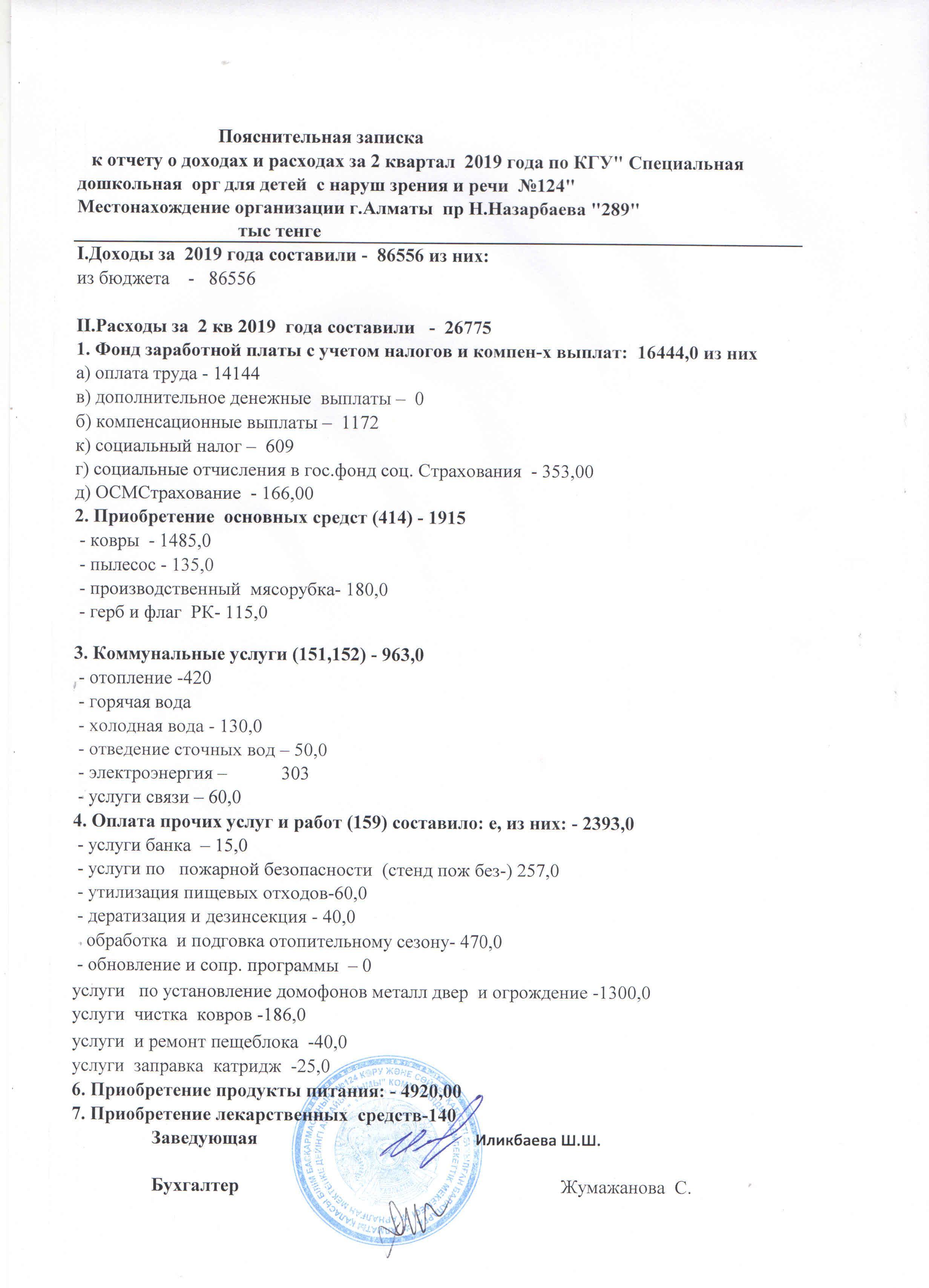 28 маусым 2019 0 1 2 3 4 5 Пояснительная записка к отчету отчету о доходах и расходах за 2 квартал 2019 год